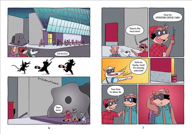 After thwarting a ring of art thieves, the Bins family becomes exhibits at the zoo and takes up a beaver on an escape plan in exchange for sneaking one of her sculptures into a museum. In graphic novel format.
