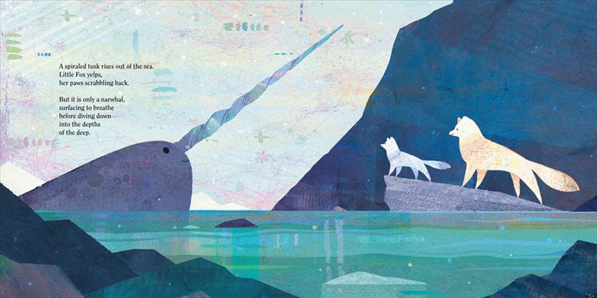 Other - 10/27/2025 Rajan Gopal (Love Is Here with You) and Cook (Hush, Little Rocket) provide a dynamic snapshot of the arctic tundra in this melodic picture book. The story opens with a morning that feels like night, under which "a full moon gazes down." Little Fox and Mama Fox emerge from their den, encountering a polar bear, a flock of rock ptarmigans, and more, as narration largely emphasizes Little Fox’s at times eager and at times uncertain perspective ("Little Fox yelps,/ her paws scrabbling back"). Meanwhile, a pair of pale-skinned humans-one with a telephoto lens in hand-shadow the foxes. While the vulpine duo leap among drifting ice, the human adult and child look on from a boat, taking in a vista that includes toothy walruses and a spread-filling whale. As a snowstorm descends, the human youth and Little Fox worriedly utter in parallel, "Mama?" Naturally, parental comfort proves close at hand, and the twined tale winds down with electric-hued northern lights followed by bedtime snuggles. Mixed media artwork incorporates magnetic, intense colors and frequently angular elements that highlight the landscape’s stark qualities. Back matter offers more about the arctic tundra; a note acknowledges artistic license in the visuals. Ages 3-6. (Jan.) - Copyright 2025