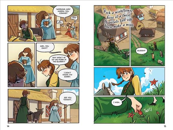 Miri lives high atop Mount Eskel where, for generations, her ancestors have lived a simple life, working in the quarry. But everything changes when word arrives that the prince of the kingdom will choose his princess from among the village girls. In graphic novel format.