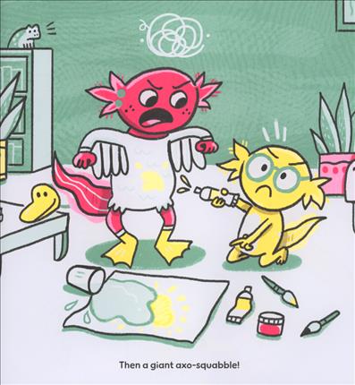 Axolotl and Axolittle are total opposites through and through, but after a squabble, they learn to make up and get along, as siblings often do.