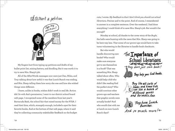 School Library Journal - 01/01/2026 Gr 3–7—Roohi and Nate couldn't be more different. Roohi is a star student who overschedules herself with sports and clubs; Nate, cued as potentially dyslexic, hates studying but loves skateboarding with his best friend, Z. Their paths cross when they reluctantly join the Lunch Bunch, a weekly book club hosted by their school librarian, Mrs. Sharp. As they get to know their fellow book clubbers—kids neither of them would have otherwise befriended—Roohi and Nate struggle to figure out how their new friendships will fit with their old ones. The story takes a turn when district budget cuts mean Mrs. Sharp can no longer host the Lunch Bunch, as she must take over librarian duties at multiple schools. The kids rally to save her role and, though ultimately unsuccessful, learn the power of their own voices. The book suffers a little from identity crisis, and the first and second halves almost read like two different books. One is a coming-of-age story about friendship and identity; the other is about agency and the importance of libraries and books in building community. Told in alternating viewpoints by the two authors, the writing is sometimes uneven. Nate's friendship with Z is shown and deeply felt, while Roohi's friendships are recounted but rarely shown. In spite of the book's flaws, students will appreciate the illustrations peppered throughout, as well as the diverse cast of characters led by Roohi (Indian American) and Nate (cued white). VERDICT An additional purchase where friendship stories circulate well.—Lindsay Loup - Copyright 2026 Publishers Weekly, Library Journal and/or School Library Journal used with permission.
