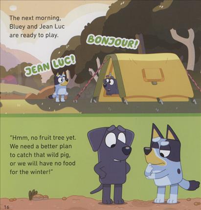 Bluey goes camping with her family and makes a new friend named Jean-Luc! Despite the language barrier, they have fun planting fruit trees, hunting a wild pig, and more! But when vacation ends, Bluey wonders if she'll ever get to see her new friend again.