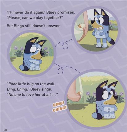 Bluey, Bingo, and Judo are playing Butterflies! But when Judo and Bluey leave Bingo behind to play another game, Bingo is heartbroken. Can Bluey make it up to her little sister? Read along to find out!