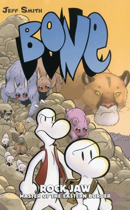 While trying to return a rat creature cub to the mountains, Fone & Smiley Bone encounter yet another adversary, the sly and mighty mountain lion Roque Ja.