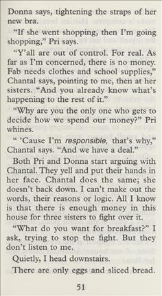 On the corner of American Street and Joy Road, Fabiola Toussaint thought she would finally find une belle vie, a good life. But after they leave Port-au-Prince, Haiti, Fabiola's mother is detained by U.S. immigration, leaving Fabiola to navigate her loud American cousins, Chantal, Donna, and Princess; the grittiness of Detroit's West Side; a new school; and a surprising romance, all on her own. In large print hardcover format.